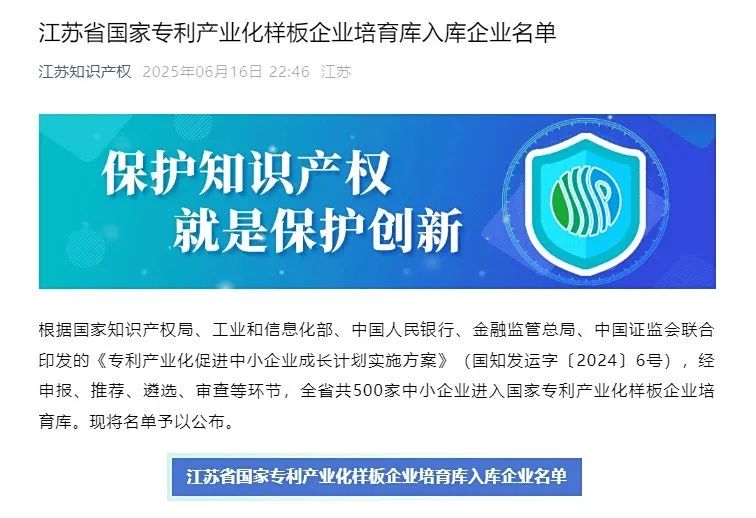 江苏省知识产权局公布